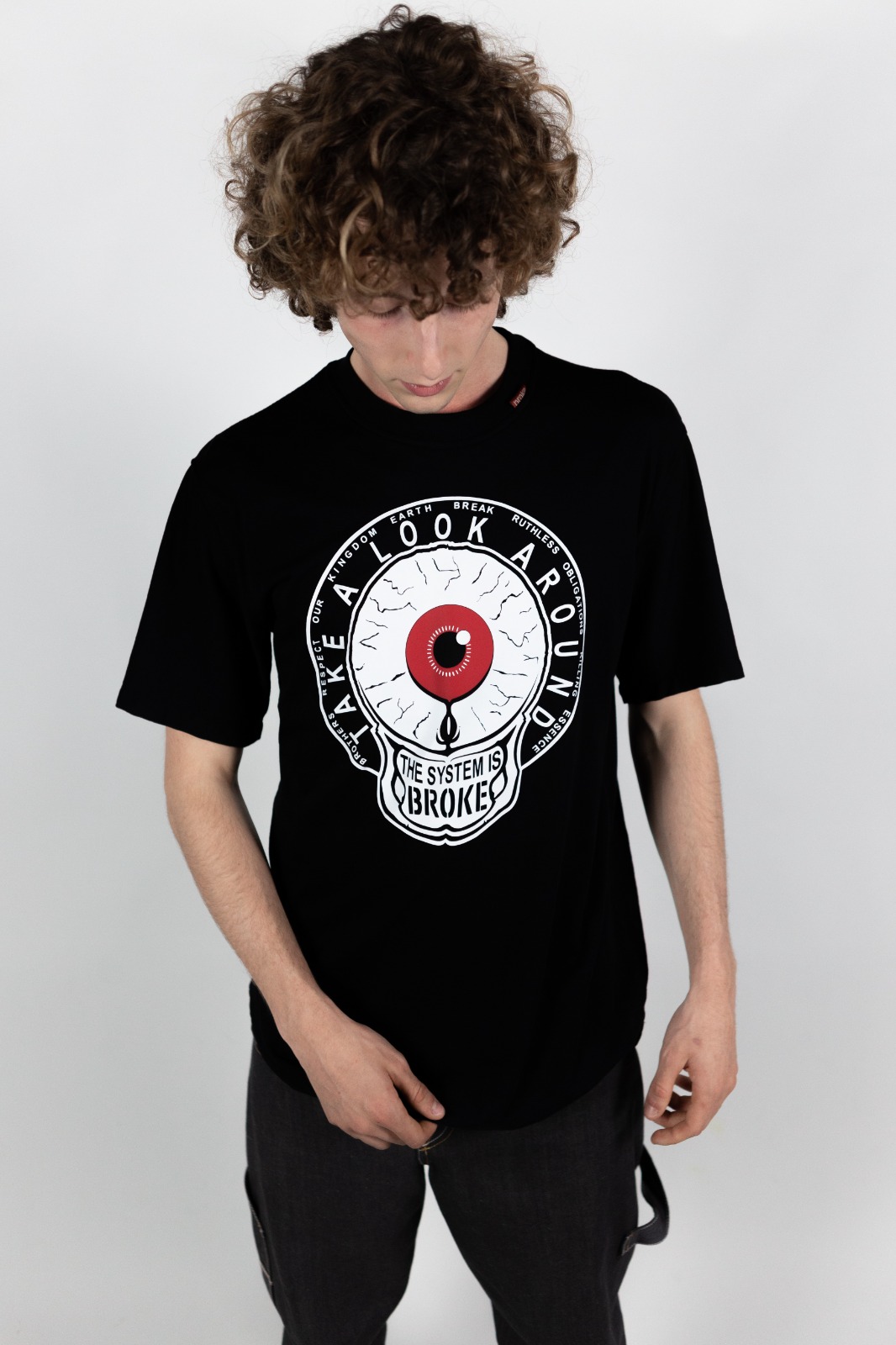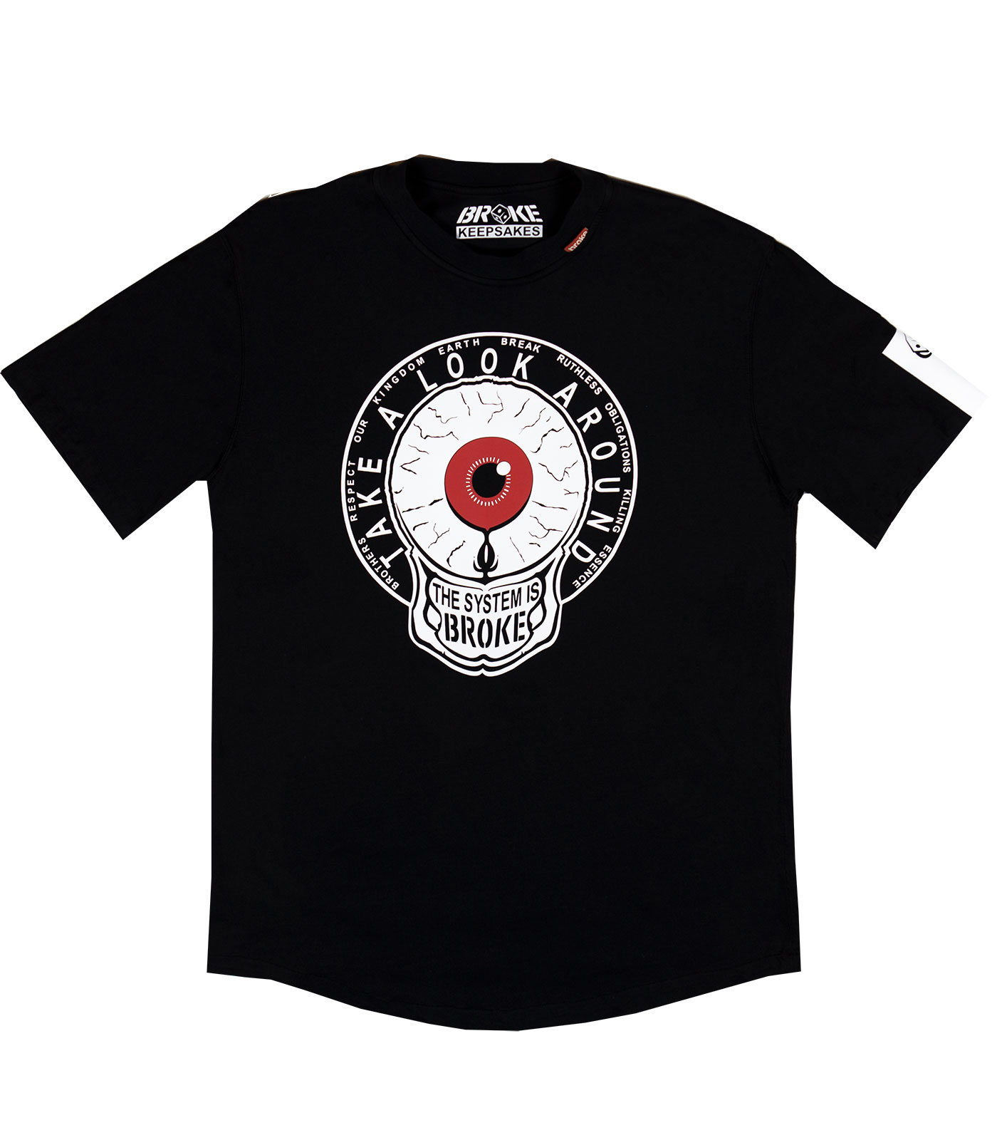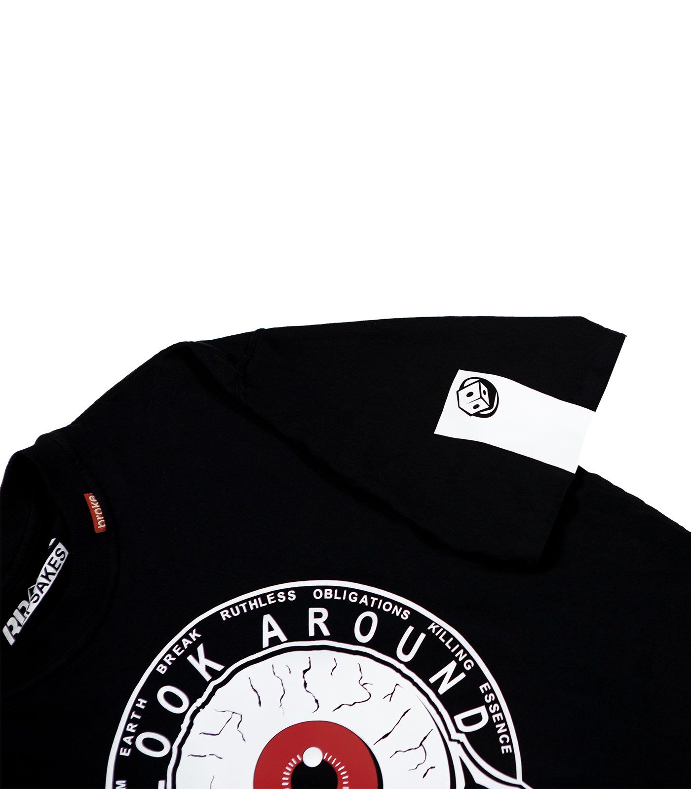 Model japraw graphics “The eye” heat-sealed. Limited edition T-shirt made in the North East of Italy with fabric already produced J.A.P.R.A.W, 100% cotton lightweight combed jersey. Loose fit with shaped bottom. Heat-sealed and overprinted band on left sleeve, print on the bottom of the back ” Keepsakes “. Internal limited edition composition print, external institutional neck flag, internal neck keepsakes print.