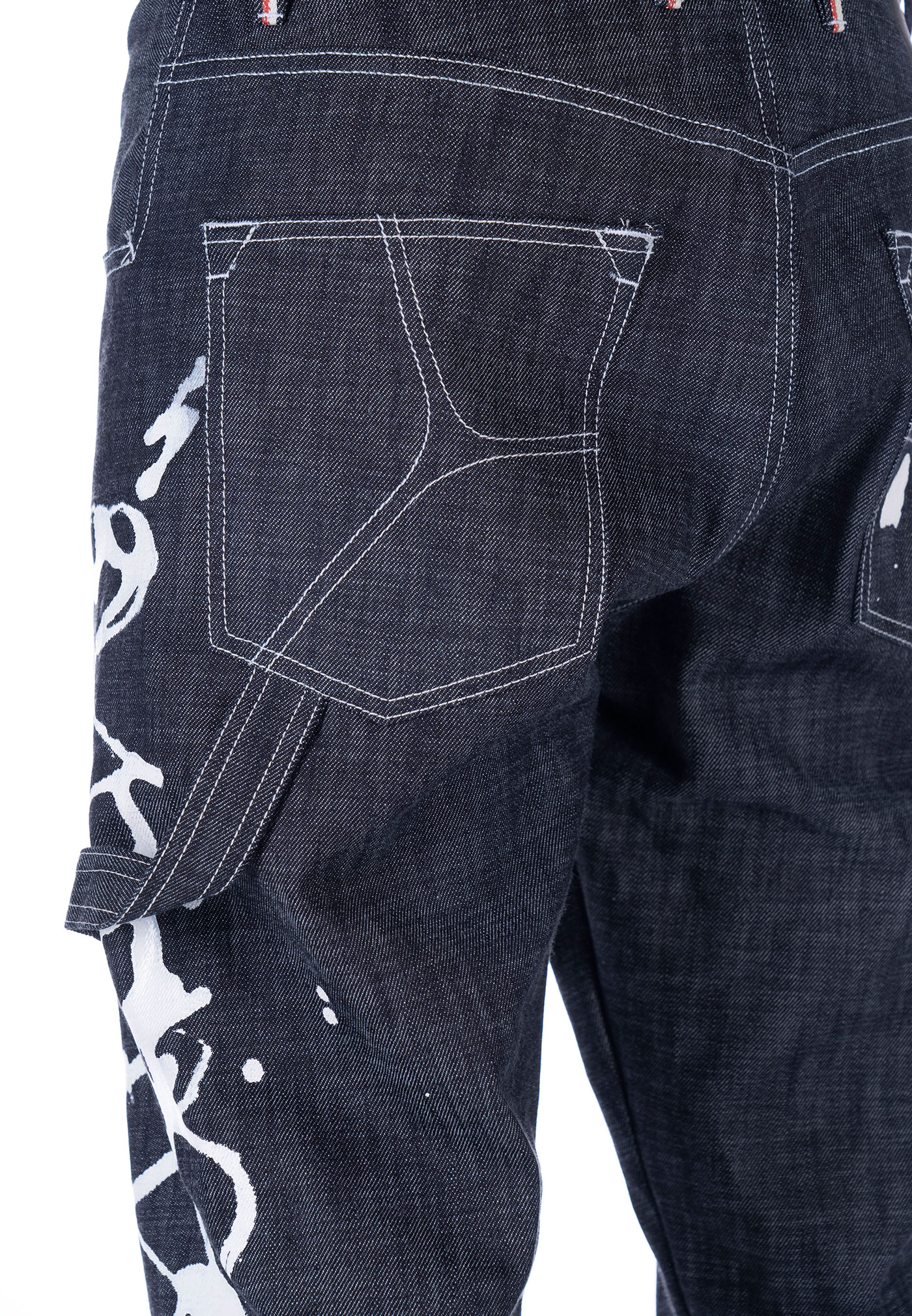 Il nostro Keep Rocking è una re interpretazione del worker’s jeans con un fit leggermente baggy contemporaneo, senza cucitura esterna, bottoni personalizzati broke heritage smaltati a broke palette. Grafica dipinta a mano dall’artista FLYCAT. Ricamo interno logo B.e.st limited edition. Prodotto in Veneto. Denim cimosato 15 0z 100% cotone puro indaco effetto crosscheck. Denim non lavato. Fodere tasche in lana e seta dipinte a mano con Tag FLYCAT e Rolling Y1 con numero serie limitata.