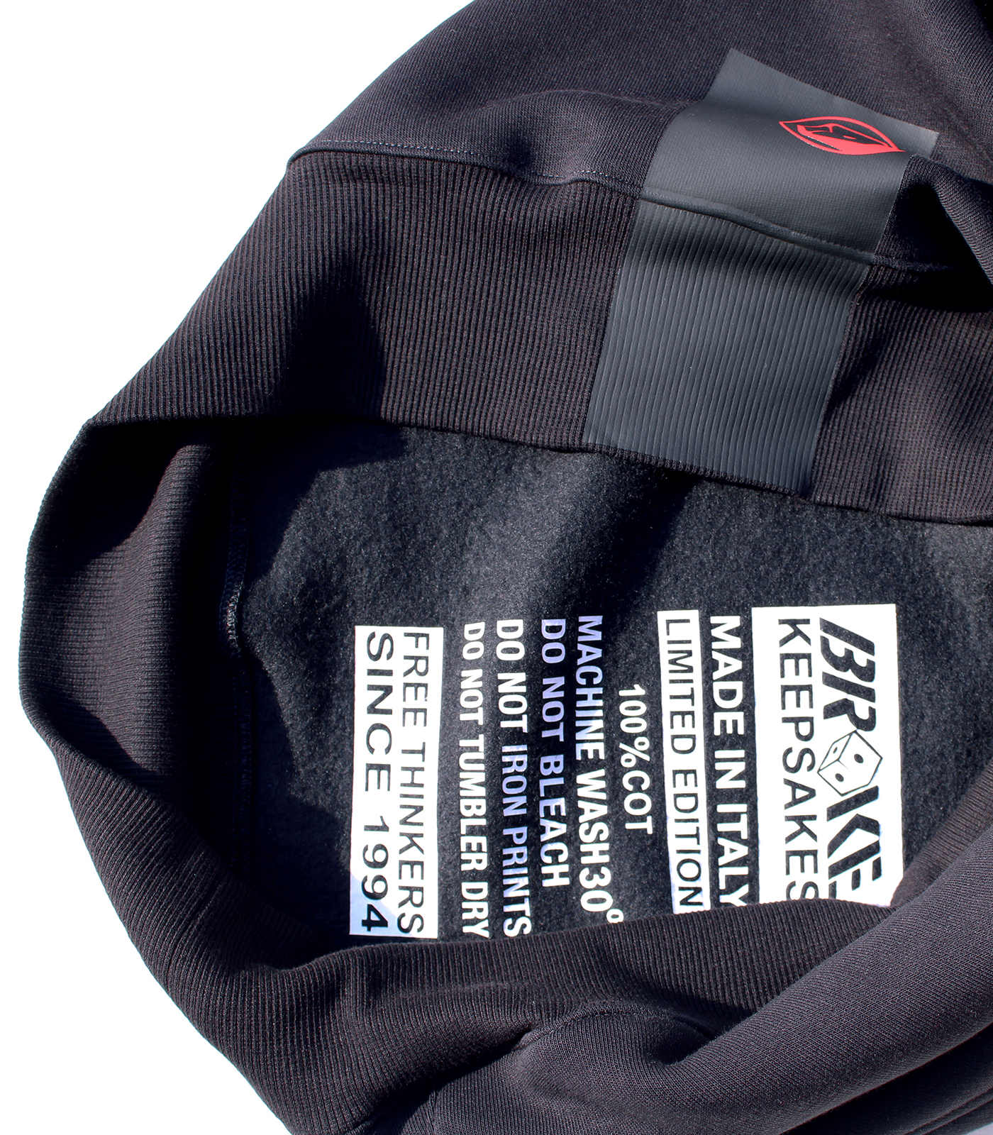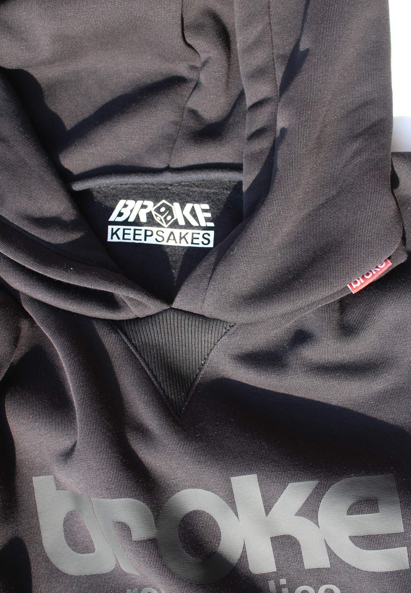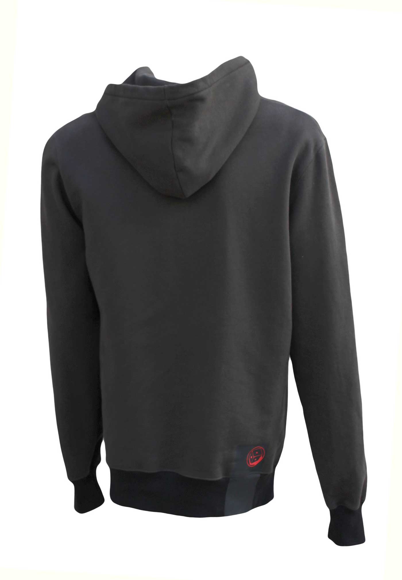 Modello Arty grafica centrale logo “roll the dice” termosaldata. Felpa con cappuccio ad edizione limitata confezionata nel Nordest italiano con tessuto già prodotto J.A.P.R.A.W, 100% cotone, felpa pesante garzata . Vestibilità loose con fondo diritto . Fascia termosaldata e sovrastampata su manica sx, fascia termosaldata sovrastampata sul retro a dx. Stampa interna composizione edizione limitata, bandierina istituzionale collo esterna, stampa collo interna logo broke keepsakes.