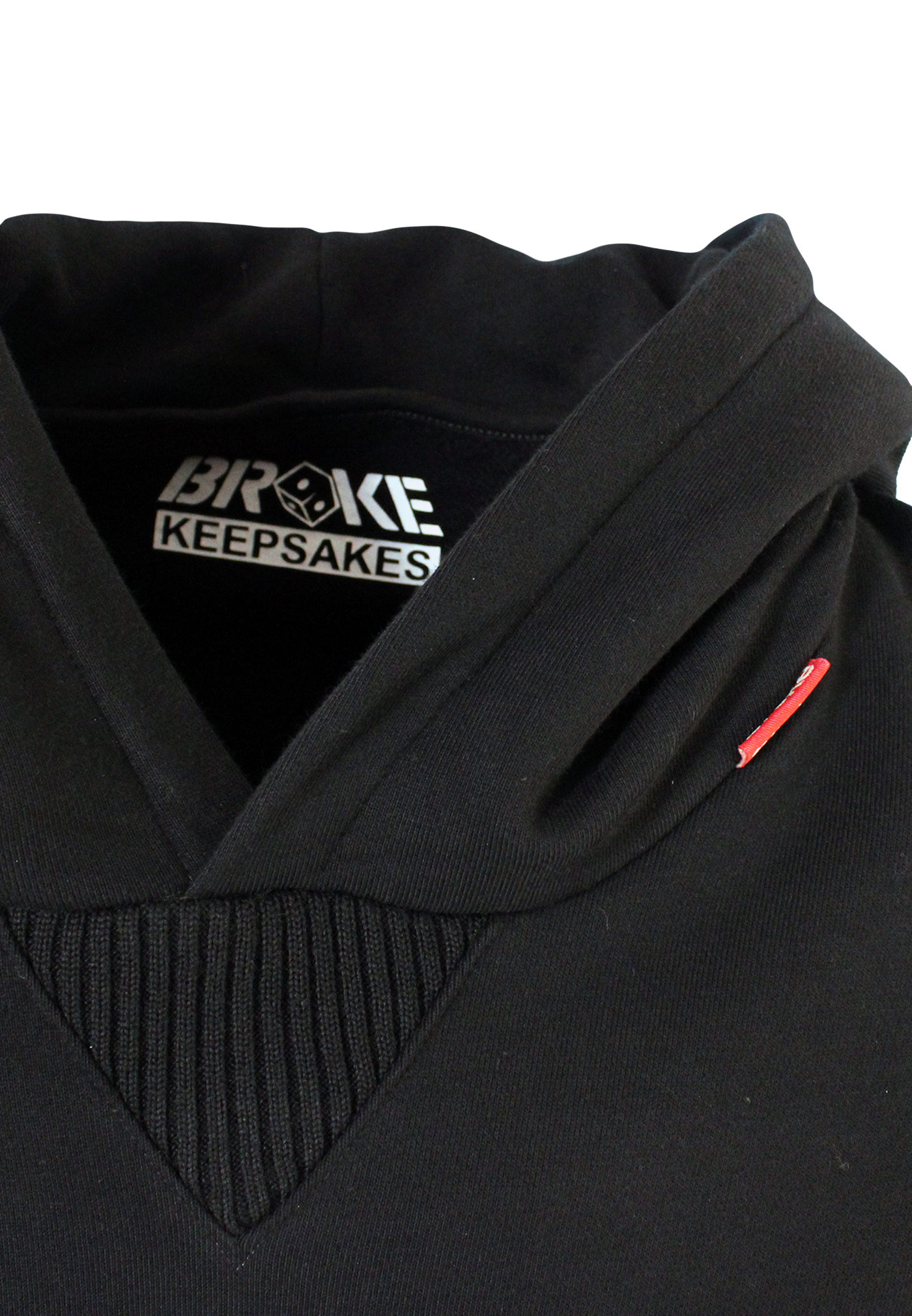 Stampa interna composizione edizione limitata, bandierina istituzionale collo esterna, stampa collo interna logo broke keepsakes.