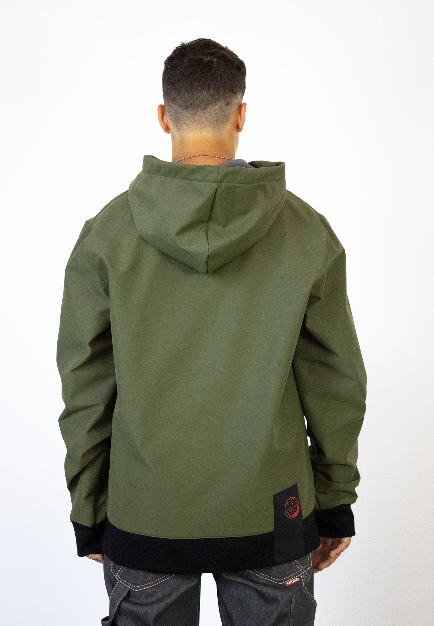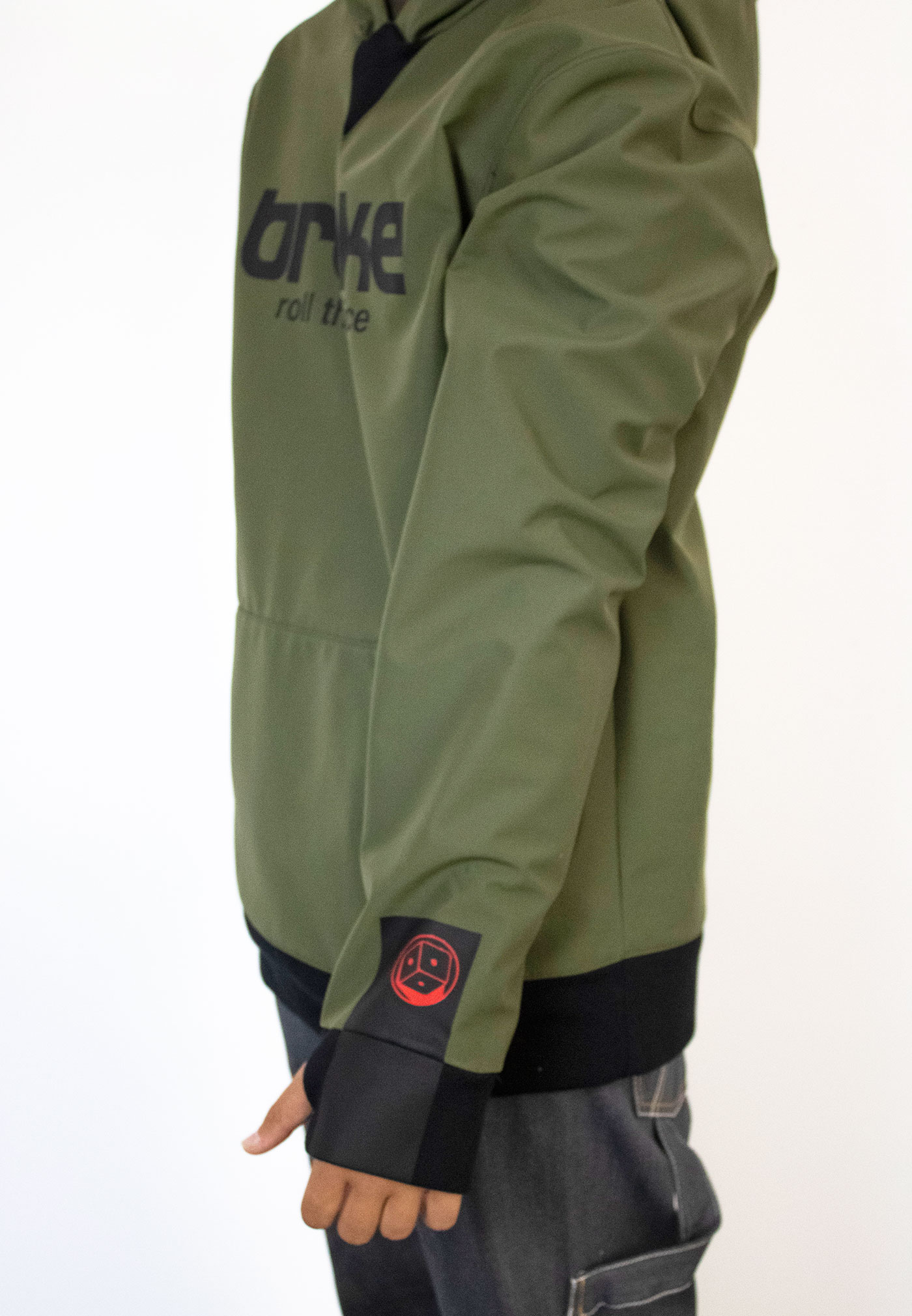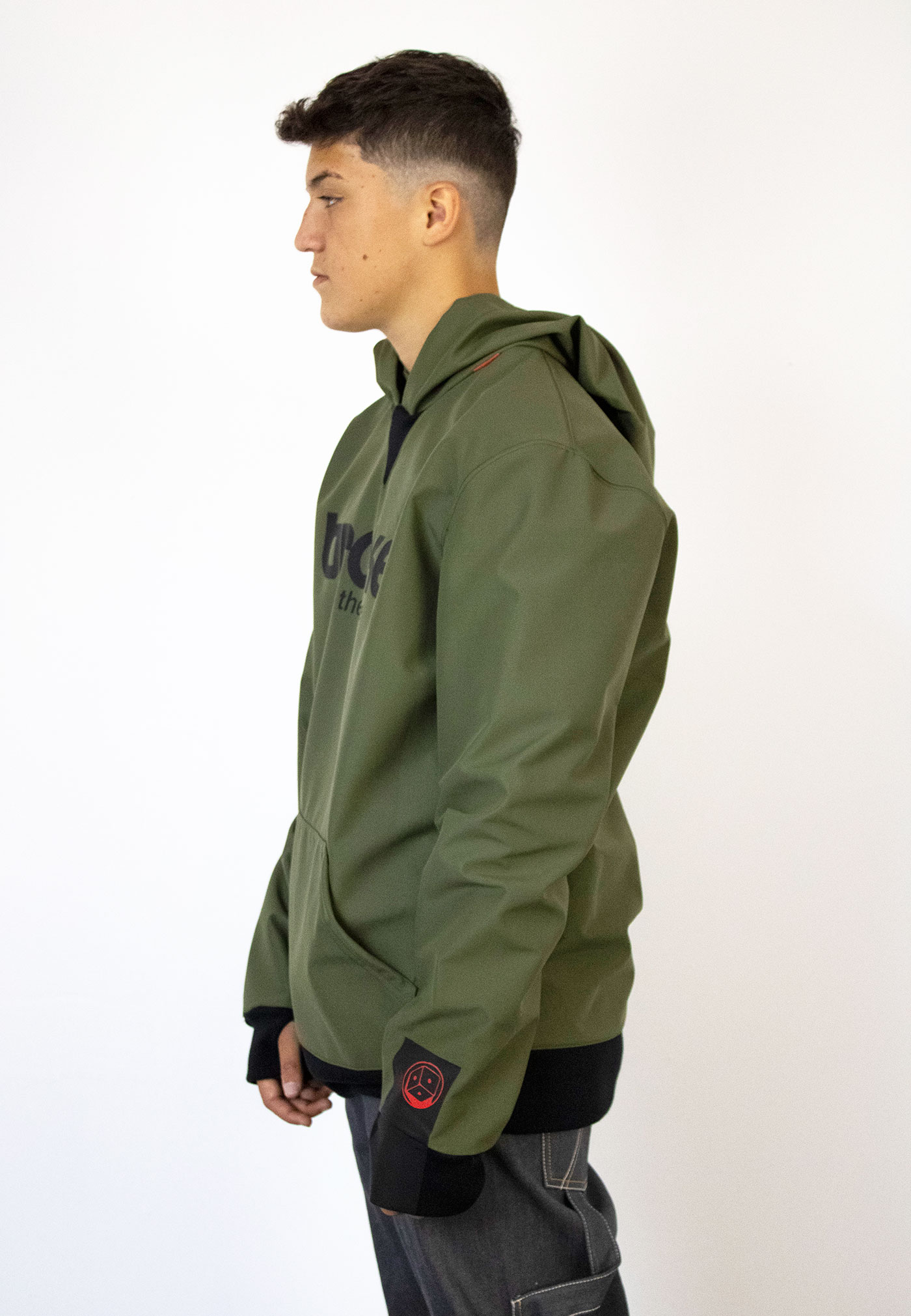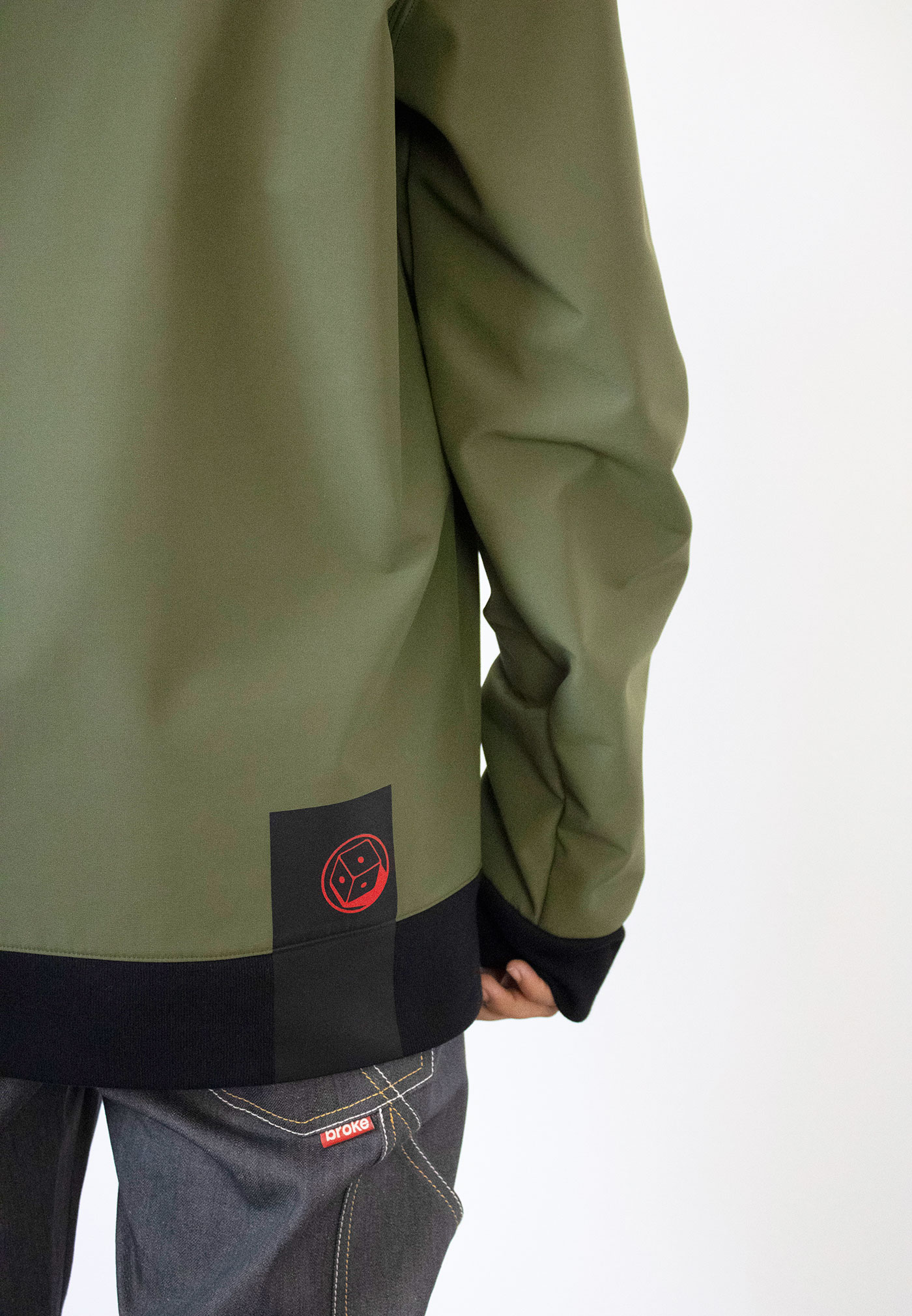 Modello Arty grafica centrale logo “roll the dice” termosaldata. Felpa con cappuccio ad edizione limitata confezionata nel Nordest italiano con tessuto già prodotto J.A.P.R.A.W, 62% PES-25%PA -13% PTFE Gore Tex anti pioggia , anti vento e termico . Vestibilità loose con fondo diritto . Fascia termosaldata e sovrastampata su manica sx, fascia termosaldata sovrastampata sul retro a dx.