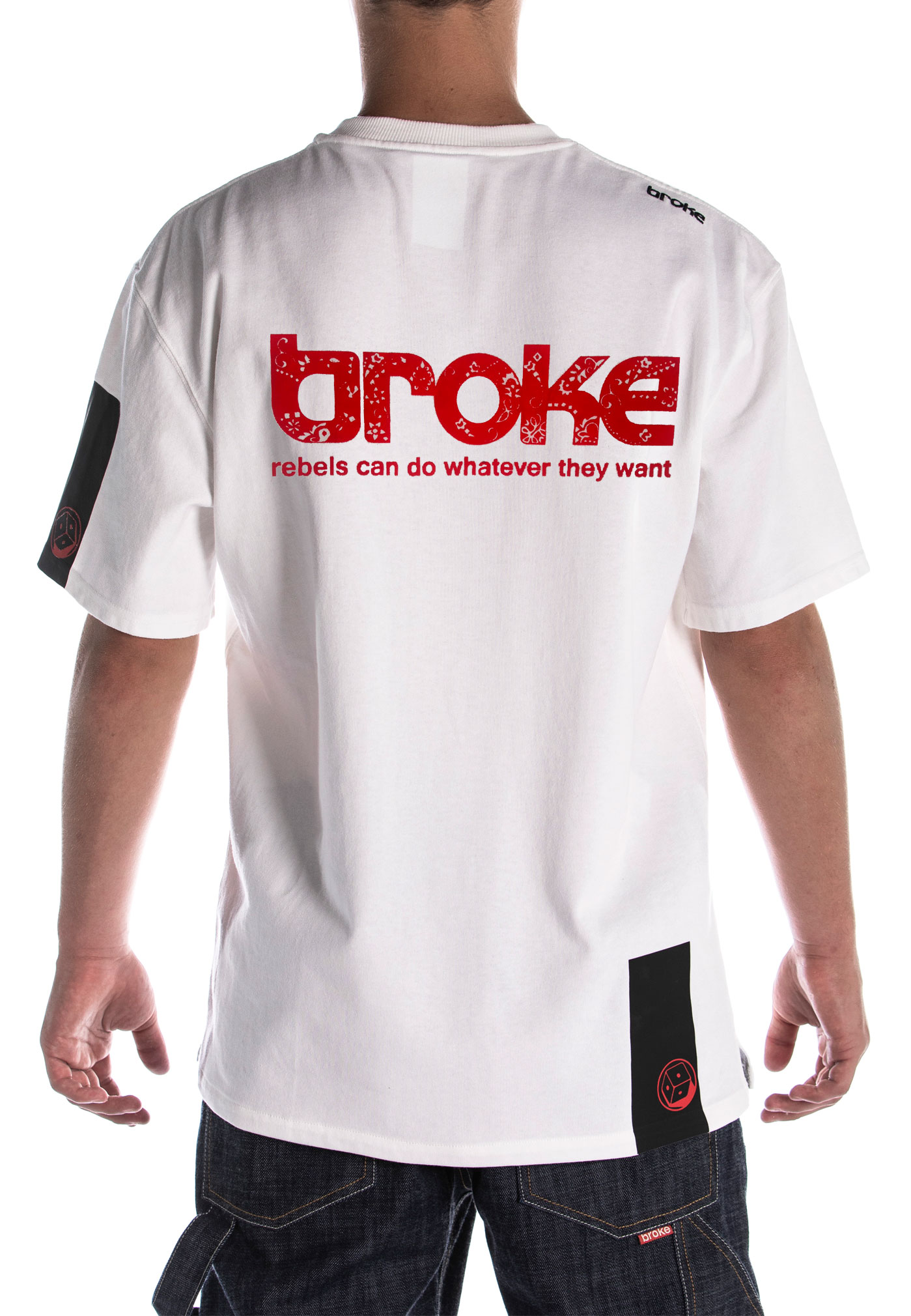 Modello 2pac grafica” WEST SIDE “dipinta a mano sul fronte e logo bandana”rebels can do whatever they want” dipinto a mano sul retro. T-shirt celebrativa ad edizione limitata, confezionata nel territorio veneziano con tessuto già prodotto J.A.P.R.A.W , cotone 100%, jersey pesante 320 gr m2. Vestibilità oversize, leggermente sagomata con fondo dritto e spacchi sul lato. Fascia termosaldata e sovrastampata su manica sx, ricamo dietro spalla destra. Fascia termosaldata e sovrastampata sul fondo del retro. Etichetta composizione edizione limitata di 33 pezzi, bandierina collo esterna broke heritage , etichetta collo interna ispirazionale.