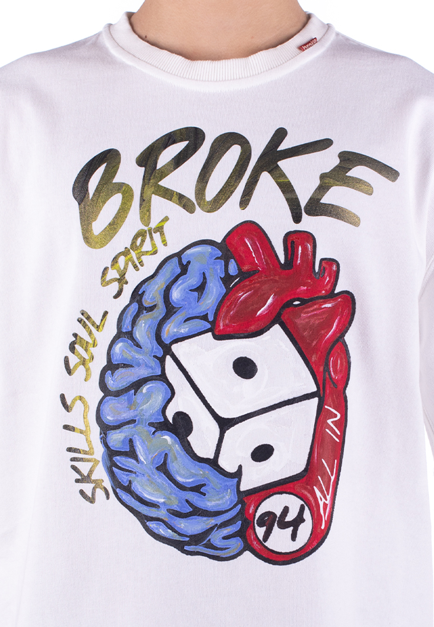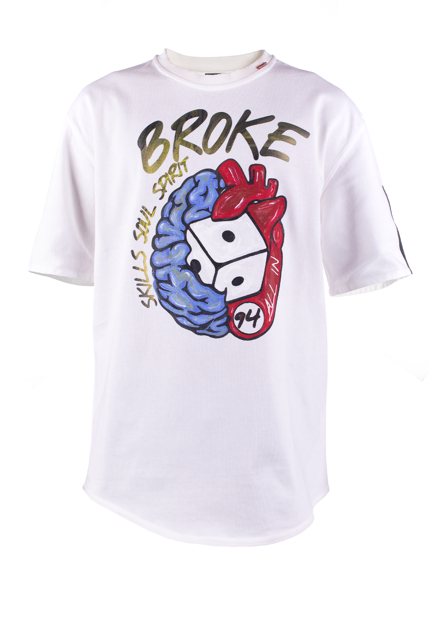 Modello Japraw grafica mente/cuore/all-in dipinta a mano. T-shirt celebrativa edizione limitata confezionata nel territorio veneziano con tessuto già prodotto, cotone 100% 300gr m2. Vestibilità oversize leggermente sagomata concurvature sul fondo. Fascia termosaldata e sovrastampata su manica sx, ricamo centrale su fondo posteriore,fascia termosaldata e sovrastampata su fondo posteriore dx. Etichetta interna composizione edizione limitata irremovibile, bandierina istituzionale collo esterna, etichetta collo interna celebrativa irremovibile.