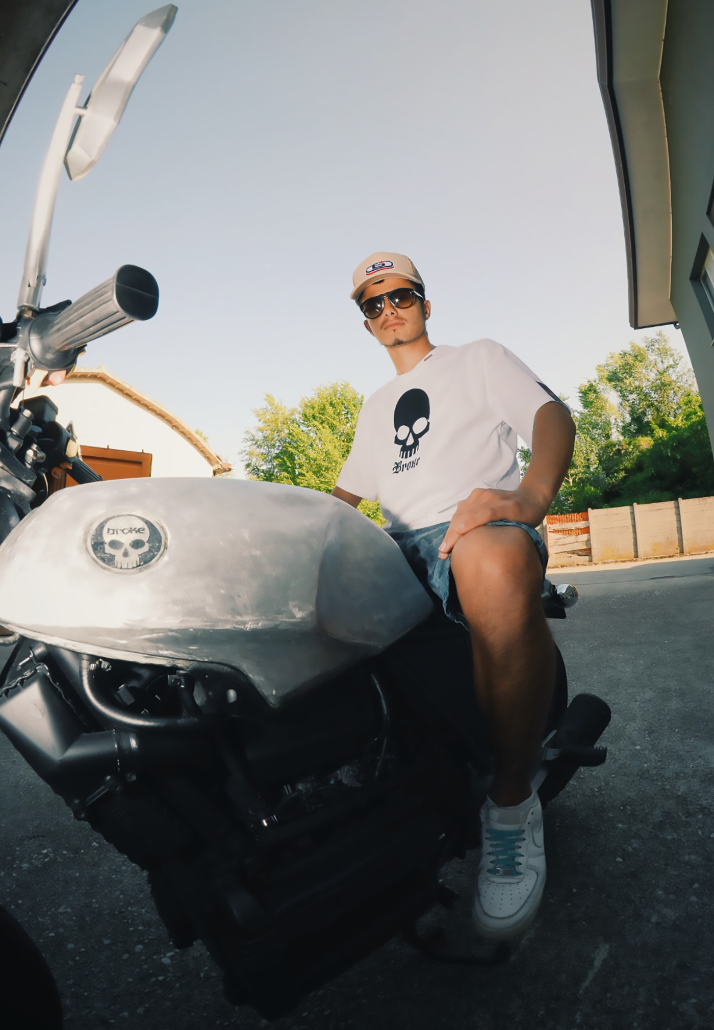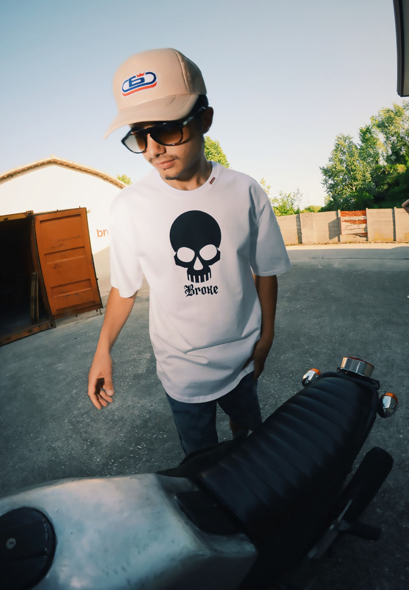 T shirt in cotone pesante con grafica “The Skull” confezionata a km.0 con tessuto già prodotto ( economia circolare )cotone 100% jersey da 250 gr /mq . Vestibilità un po’ ampia leggermente sagomata sul fondo. Fascia termosaldata e sovrastampata su manica sx e.Etichette interne Celebrative . Etichetta broke original sul collo esterno sx. Prodotto 100% Made in Italy.