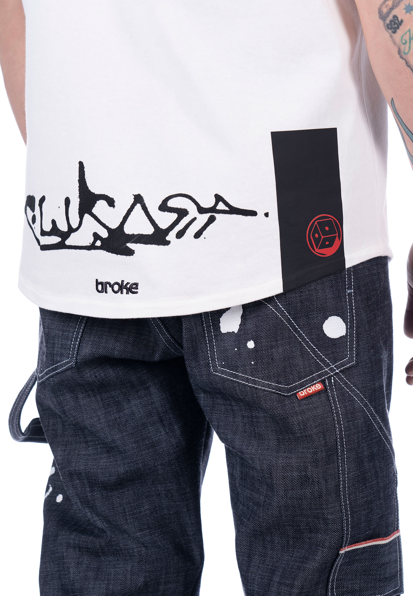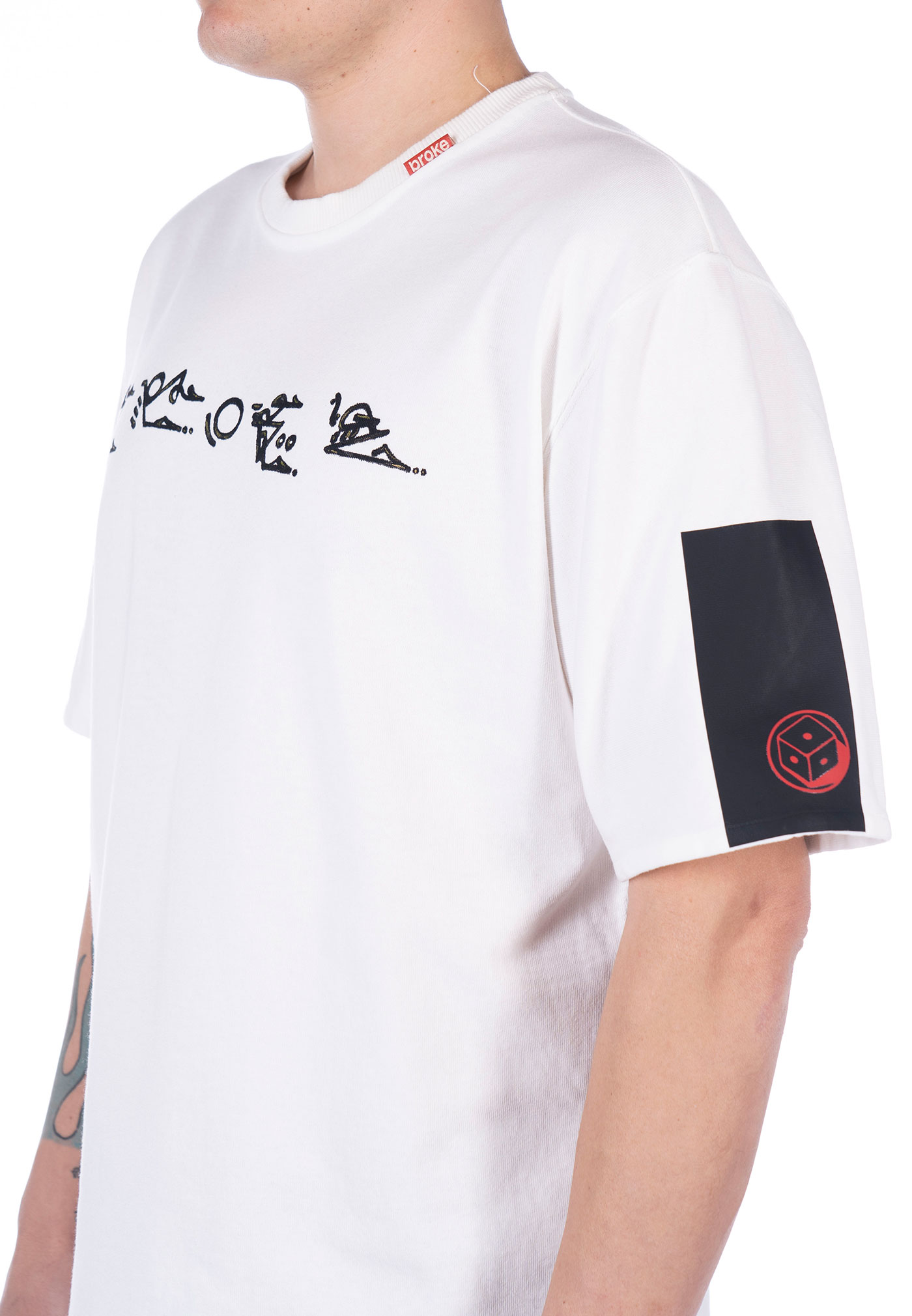 T- shirt oversize “ Lettere – Sigillo ” FLYCATXBROKE confezionata a Treviso con tessuto J.a.p.r.a.w. jersey pesante , 300gr./m2 ,vestibilità broke loose fit leggermente sagomata sul fondo. Fascia termosaldata e sovrastampata logo Broke “dice” su manica sx. Ricamo centrale sul fondo posteriore, fascia termosaldata e sovrastampata su fondo posteriore dx. Etichetta interna composizione edizione limitata FLYCATXBROKE irremovibile, bandierina istituzionale collo esterna, etichetta collo interna celebrativa irremovibile.