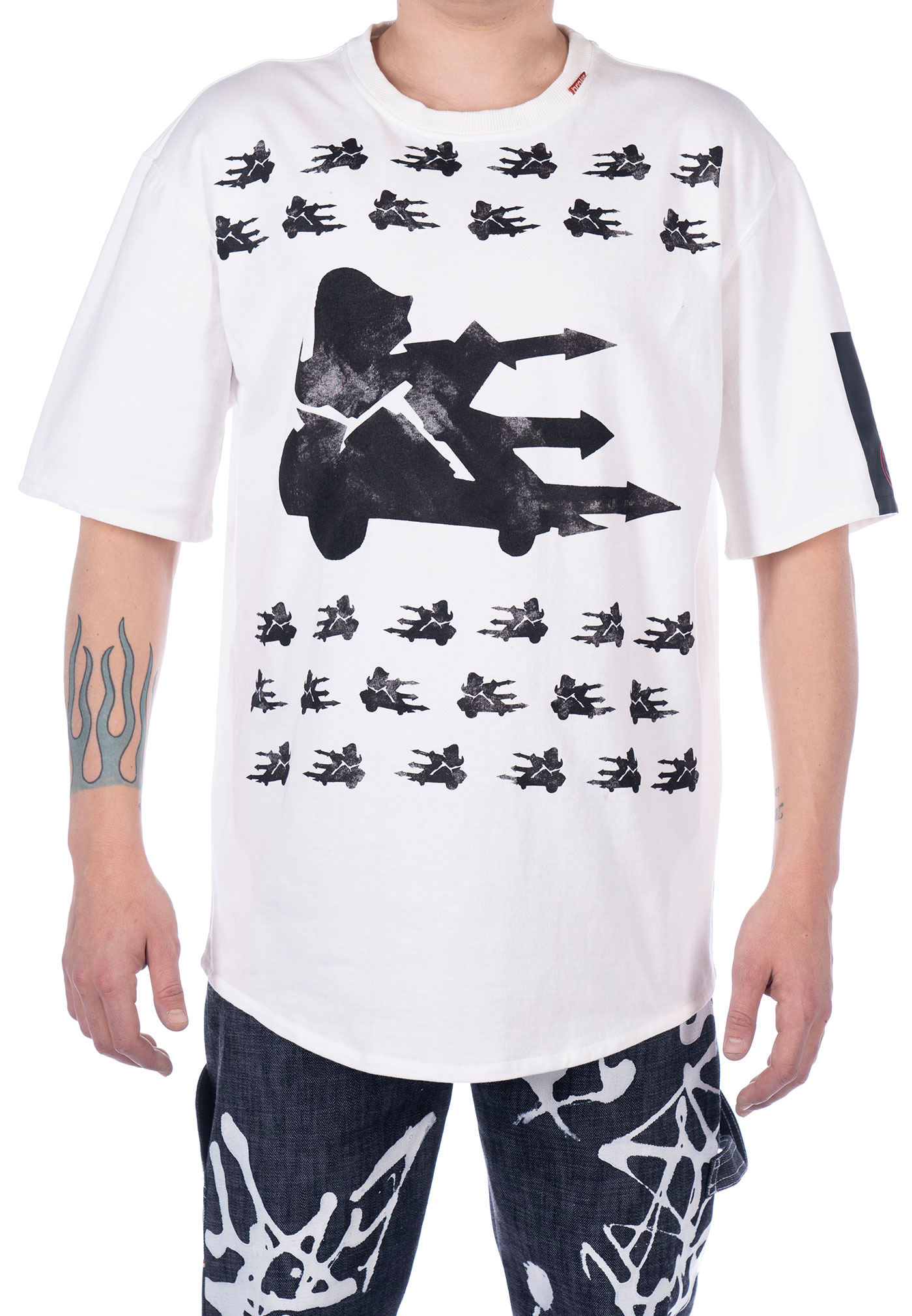 T shirt oversize “ Rolling Y ” FLYCATXBROKE confezionata a Treviso con tessuto J.a.p.r.a.w. jersey pesante ,300gr./m2 ,vestibilità broke loose fit leggermente sagomata sul fondo. Fascia termosaldata e sovrastampata logo Broke “dice” su manica sx. Ricamo centrale sul fondo posteriore, fascia termosaldata e sovrastampata su fondo posteriore dx. Etichetta interna composizione edizione limitata FLYCATXBROKE irremovibile, bandierina istituzionale collo esterna, etichetta collo interna celebrativa irremovibile.