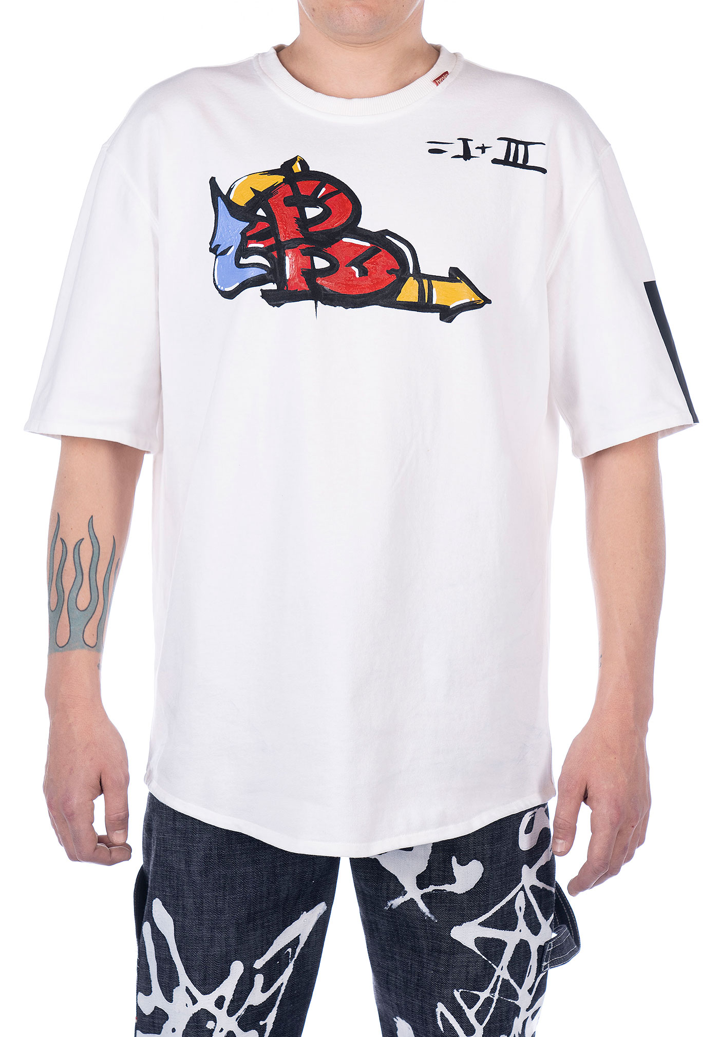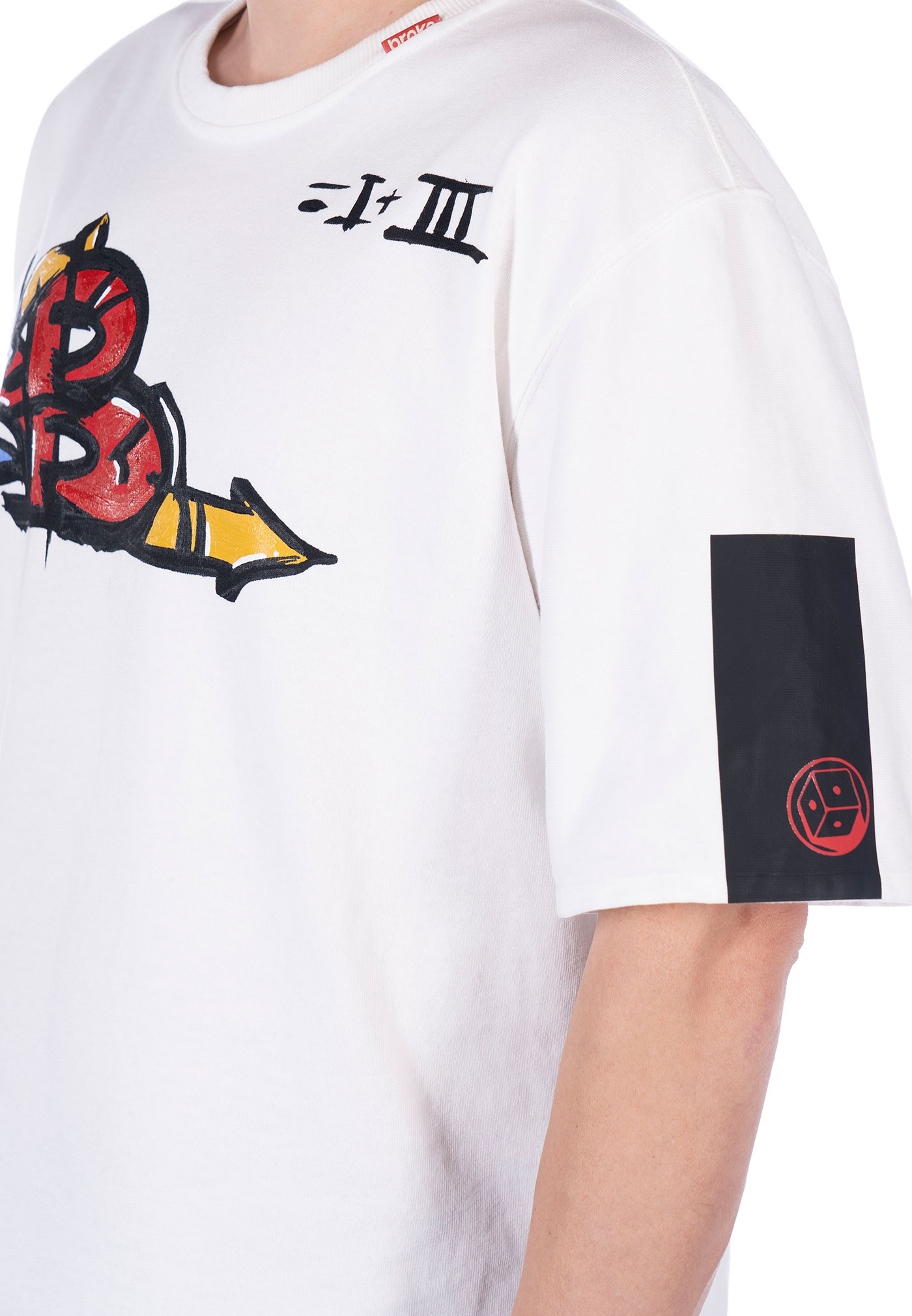 T- shirt oversize “ The B is on ” FLYCATXBROKE confezionata a Treviso con tessuto J.a.p.r.a.w. jersey pesante ,300gr./m2 ,vestibilità broke loose fit leggermente sagomata sul fondo. Fascia termosaldata e sovrastampata logo broke “dice” su manica sx. Ricamo centrale sul fondo posteriore, fascia termosaldata e sovrastampata su fondo posteriore dx. Etichetta interna composizione edizione limitata FLYCATXBROKE irremovibile, bandierina istituzionale collo esterna, etichetta collo interna celebrativa irremovibile.