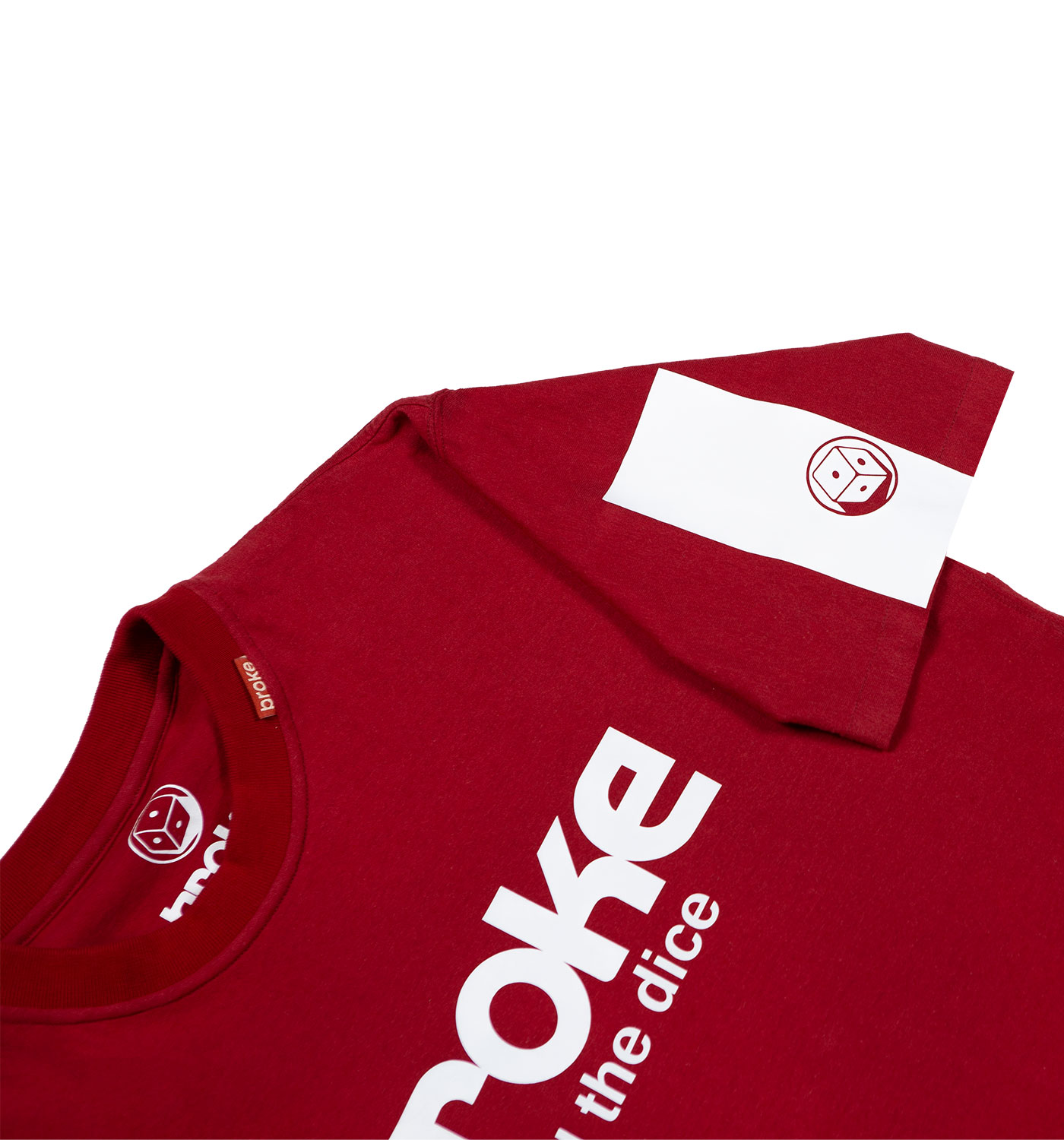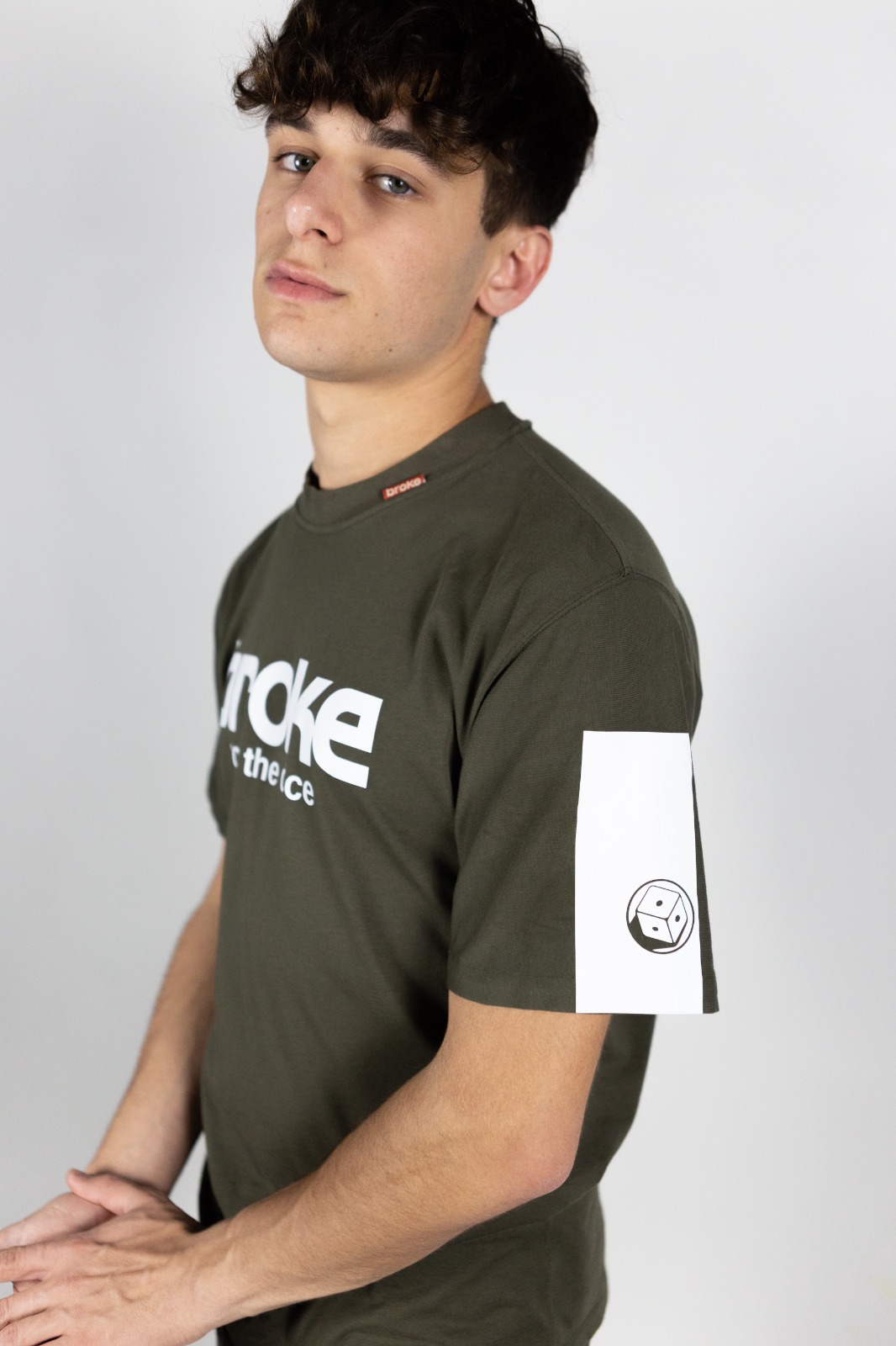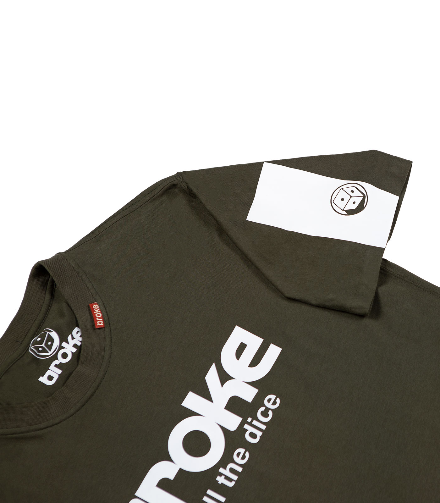 Modello japraw grafica logo “roll the dice” termosaldata. T-shirt ad edizione limitata confezionata nel Nordest italiano con tessuto già prodotto J.A.P.R.A.W, cotone 100% jersey leggero pettinato . Vestibilità loose con fondo sagomato. Fascia termosaldata e sovrastampata su manica sx, fascia termosaldata sovrastampata sul retro a dx.Stampa interna composizione edizione limitata, bandierina istituzionale collo esterna, stampa collo interna logo broke heritage.