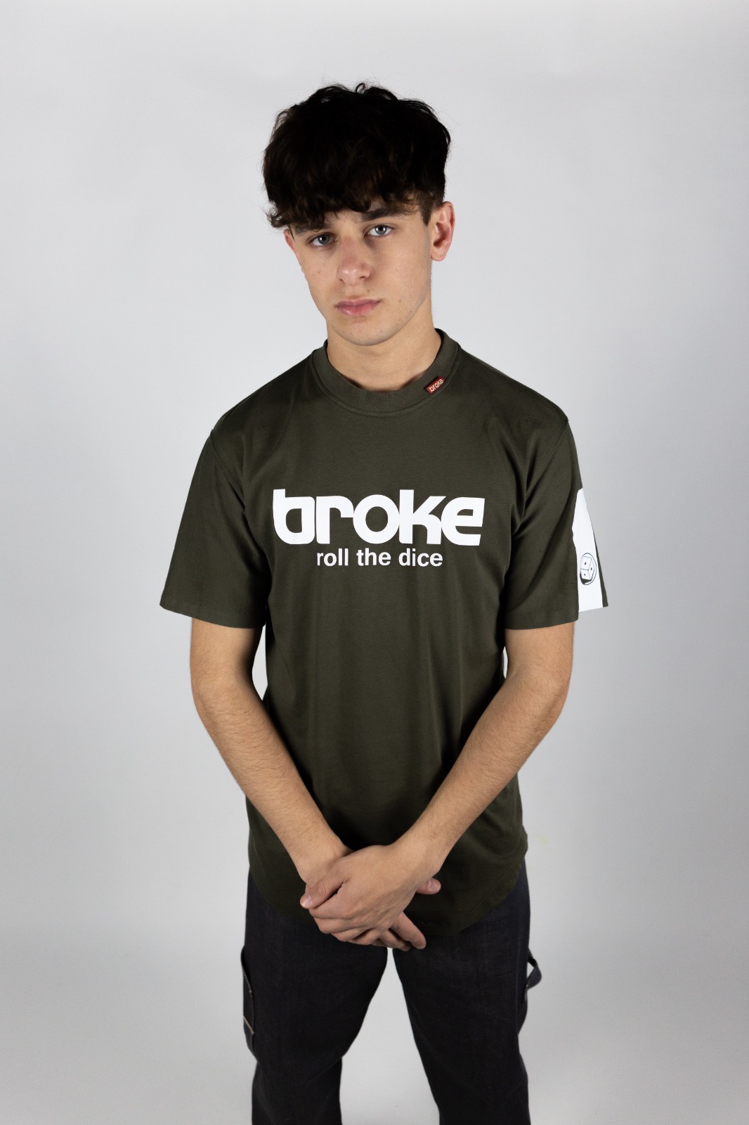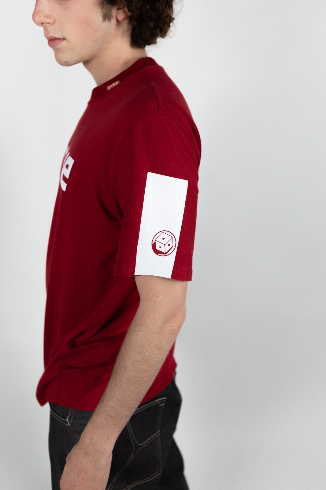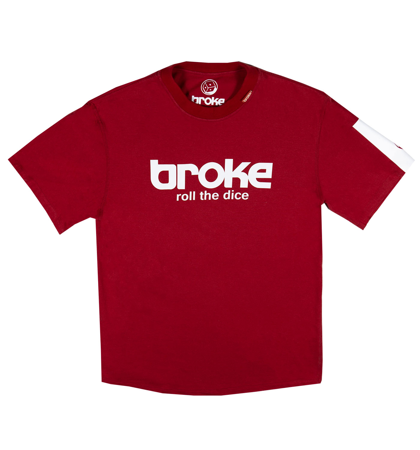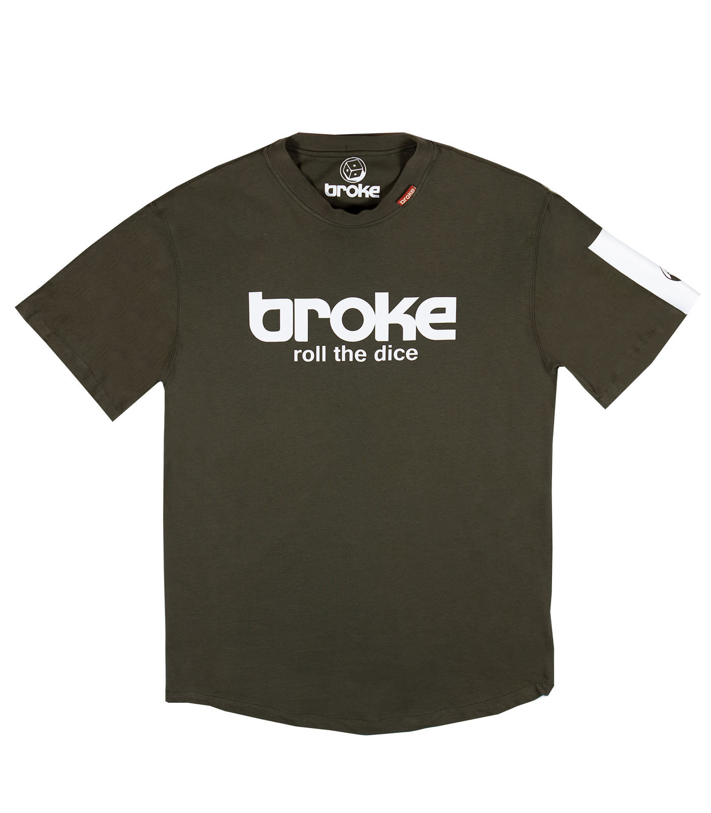 Modello japraw grafica logo “roll the dice” termosaldata. T-shirt ad edizione limitata confezionata nel Nordest italiano con tessuto già prodotto J.A.P.R.A.W, cotone 100% jersey leggero pettinato . Vestibilità loose con fondo sagomato. Fascia termosaldata e sovrastampata su manica sx, fascia termosaldata sovrastampata sul retro a dx.Stampa interna composizione edizione limitata, bandierina istituzionale collo esterna, stampa collo interna logo broke heritage.